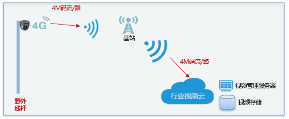 通过采用4G/5G无线视频压缩传输方案,在前端部署相应的压缩设备,压缩设备通过有线网络从摄像头进行取流,原有的4G/5G物联网卡从摄像头取出后,再安装在前端压缩设备中。视频流通过压缩设备压缩后,再通过4G/5G网卡进行数据传输。原有摄像头上SD卡统一放置在前端压缩设备中。