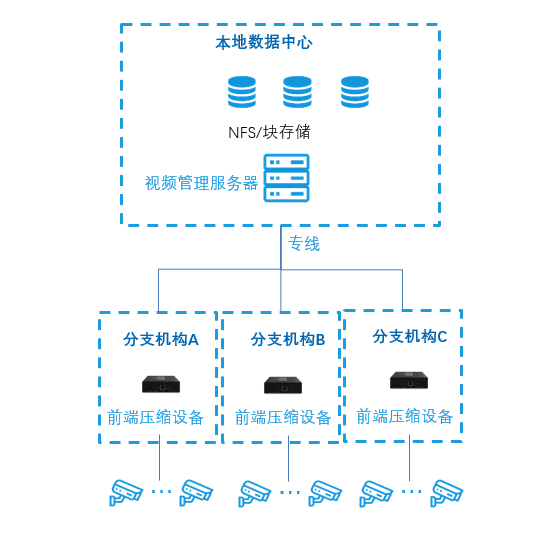 将视频压缩服务器部署在用户现场,从管理服务器指定的摄像头各取一路视频流,视频数据集中通过视频压缩服务器无损压缩后,将数据传输到本地存储
