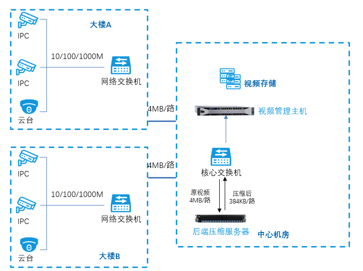 将分支机构的监控视频数据无损压缩后通过较低的带宽传输到用户总部
