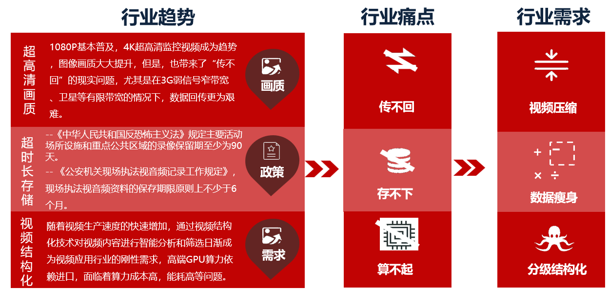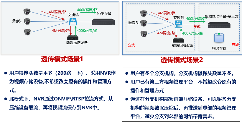 l部署:后端压缩设备旁路部署,通过ONVIF、RTSP协议从摄像头取流,压缩后写入到后端。